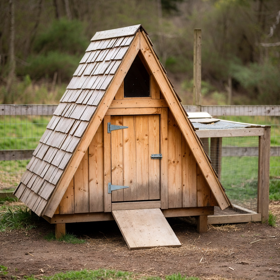 An A-frame duck coop is one of the simplest and most affordable designs you can build. The triangular frame naturally sheds rain and snow, and the low profile keeps the structure stable during strong winds.