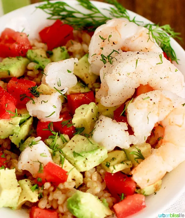 Shrimp cook in minutes and offer high-quality protein. Add brown rice for fiber and top with sliced avocado for healthy fats.