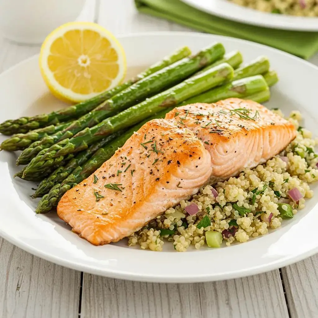 1. Lemon Garlic Salmon with Roasted Asparagus & Quinoa
