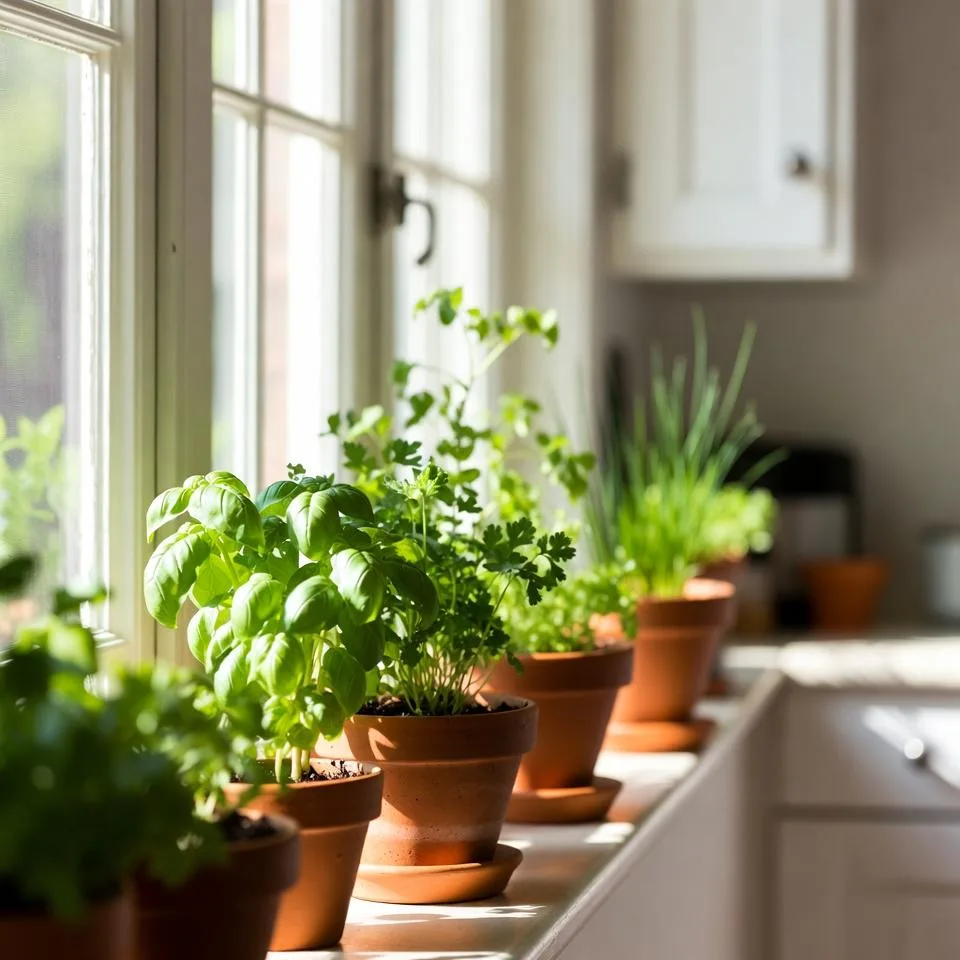 A sunny windowsill gives herbs exactly what they need: light, warmth, and easy access. When herbs sit within arm’s reach of the stove, you actually use them.