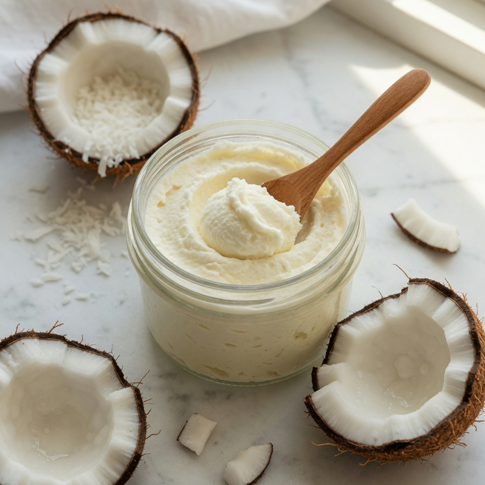Coconut oil is the star here. It’s deeply moisturizing and absorbs well into the skin, especially when whipped into a light, fluffy texture.