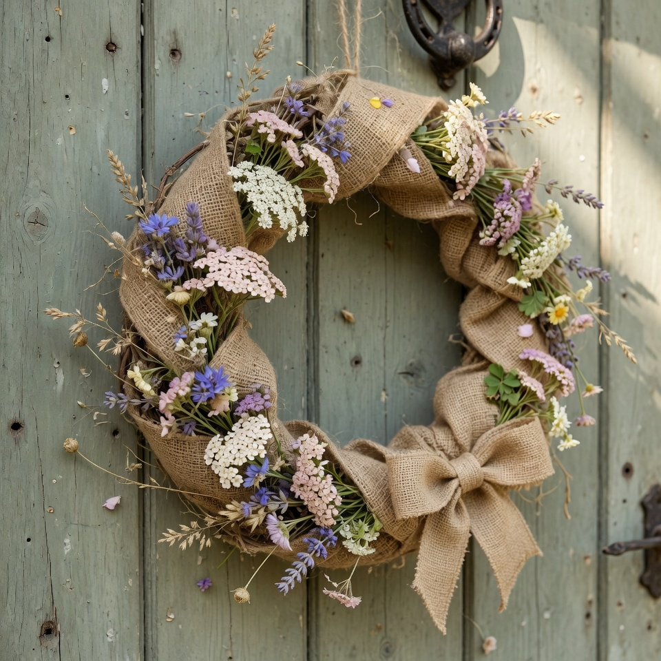 10. Rustic Burlap & Wildflower Hanger
