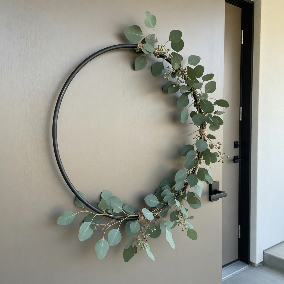 A simple metal or wooden hoop with a touch of greenery (like eucalyptus) creates a clean, modern look that feels effortlessly stylish.