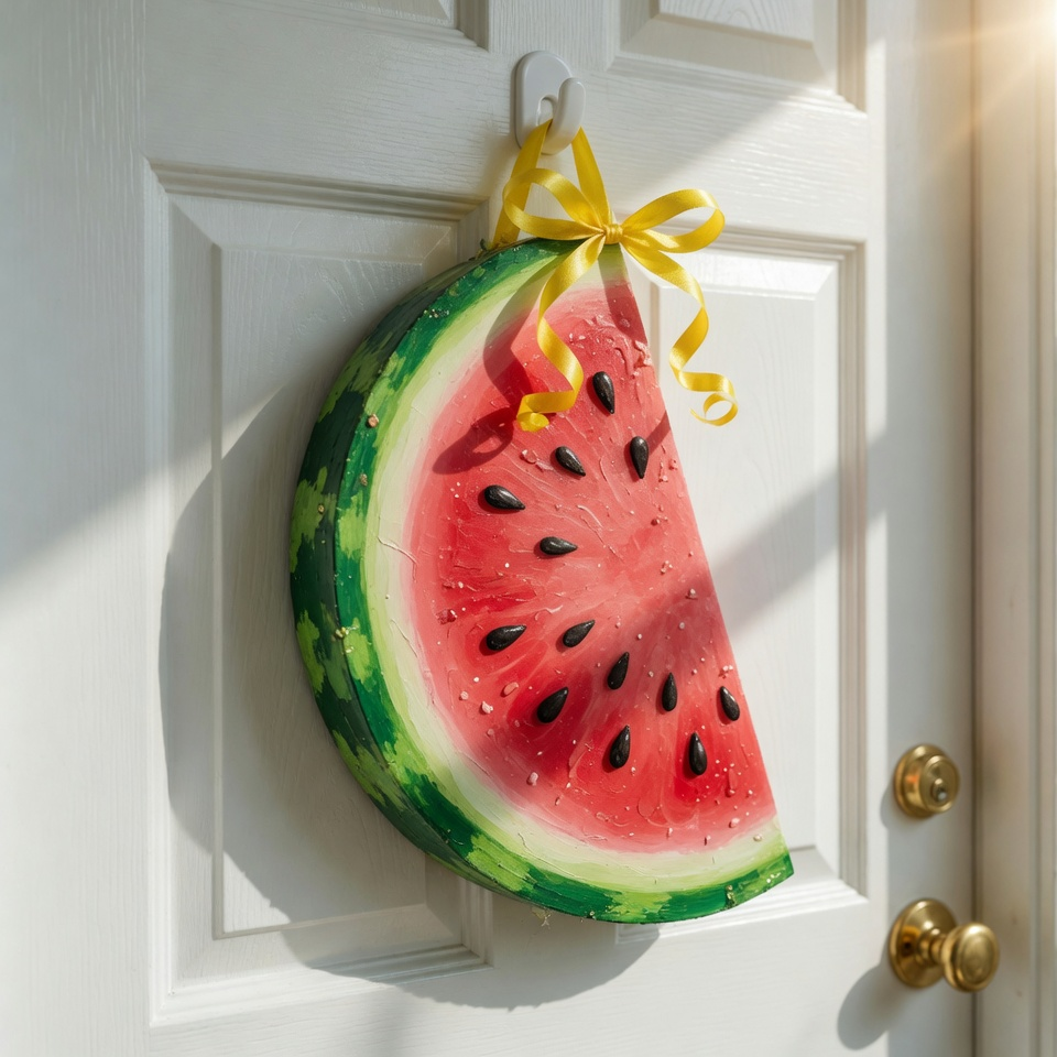A watermelon-themed door hanger screams summer in the best way. The bright red, fresh green, and little black “seeds” instantly make your entrance pop.
