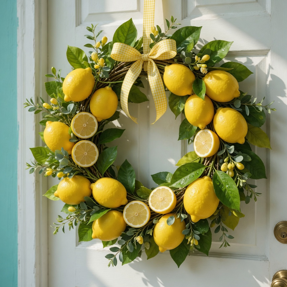 A lemon-themed door hanger brings that crisp, clean energy to your entryway. Bright yellow paired with green leaves feels lively but not overwhelming.