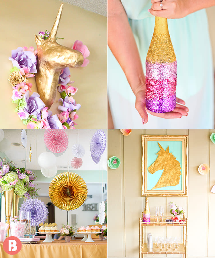 You don’t need unicorns everywhere. One statement piece on the wall, a few thoughtful accents on the dessert table, and subtle shimmer woven throughout is more than enough.