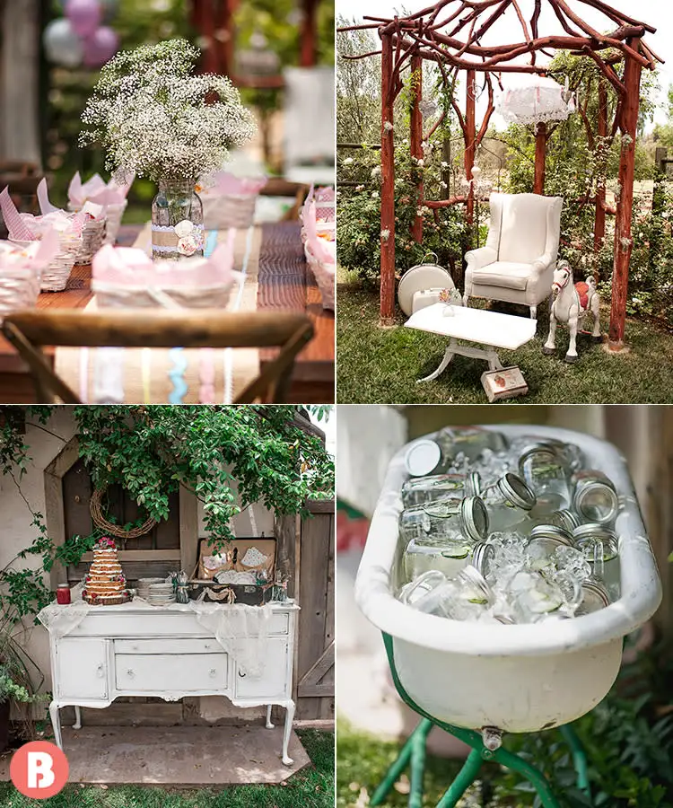 This theme shines outdoors, especially in a backyard, garden, or countryside setting, but it can also be recreated indoors with greenery, wood accents, and soft light.